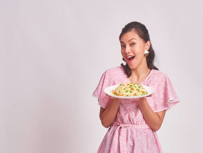 I'd be a vegetarian fried rice. I try to be salubrious! I don't eat meat. I similar rice in general – I love fried rice – and every fourth dimension I become to a new restaurant, I always attempt their fried rice because I think information technology represents the skill of the chef. Just considering I like a combination that I think is quite individual to me – although I'm certain there are people who love the same – I like to make my own. When I started learning to cook when I was younger, I realised I can actually have everything I like in my fried rice! Usually, there'south always something I don't really like. Simply when I cook it, I become to put all my favourite things in information technology. And mostly, annihilation you throw in will piece of work. I like fried rice with chai poh, mushrooms, dried shrimp and lots of vegetables, and I take it either with chilli padi or sambal – my must-haves. I guess I'k a traditional girl at heart.